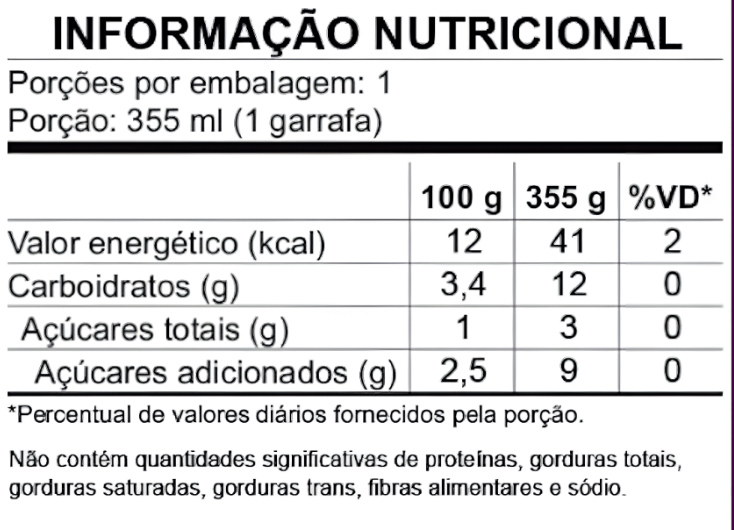 Manter refrigerado entre 1 a 8°C devido a fermentação natural da bebida. Após aberta, consumir em até 5 dias.